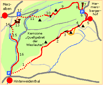 Balken, bis Wanderparkplatz Gräfenstein]. Dieser verläuft durch die Kernzone