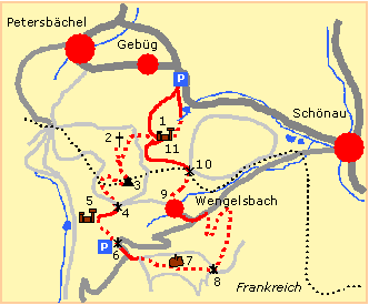 gelegenen französischen Weiler Wengelsbach (264 m) beginnt. Auf