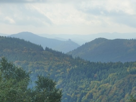 lohnende Sicht in den zentralen Pfälzerwald, die Haardt, die 400 Meter tiefer