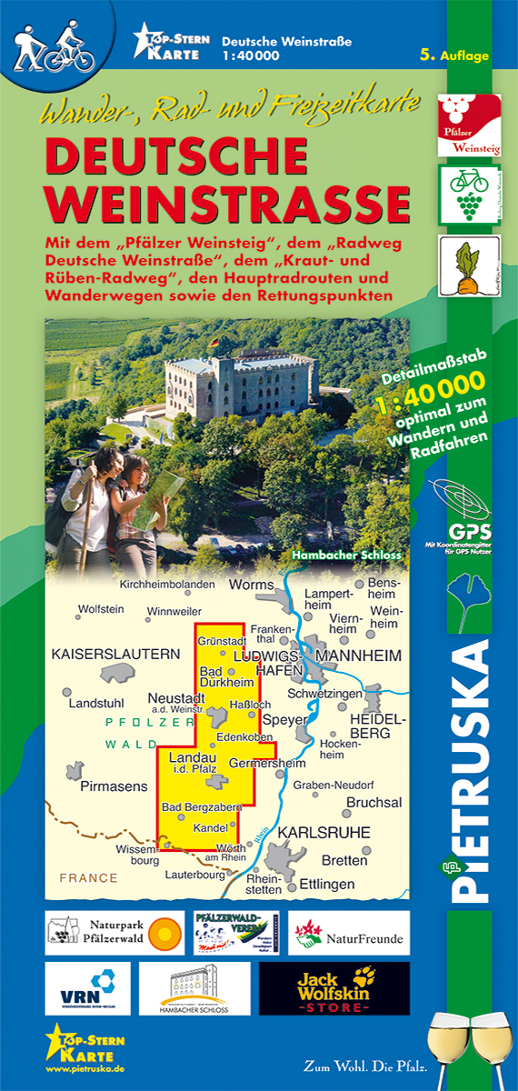 Mit Rad- und Wanderwegen des Pfälzerwald-Vereins sowie den Prädikats-Weitwanderwegen und allen Qualitäts wanderwegen.