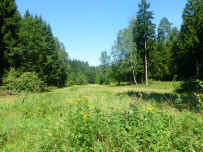 entlang steigt man jetzt in eine waldige Talsenke hinab und hinauf zur letzten