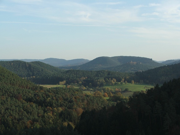 Ausblicke ins Dahner Felsenland, eine Reihe ganz unterschiedlicher Felsen und