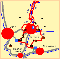 b) Von der Burgruine Altdahn direkt nach Erfweiler (9,5 km): Von der Burg bis