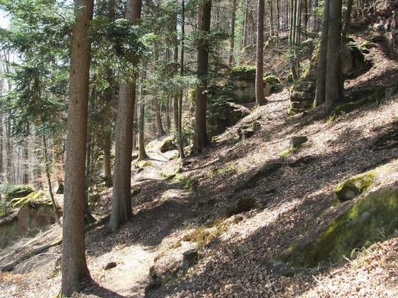 eine überwiegend einsame Waldlandschaft mit bizarren Felsformationen