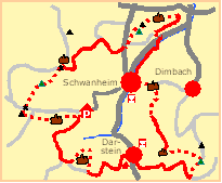 hübschen Talorten Schwanheim und Darstein. Drei