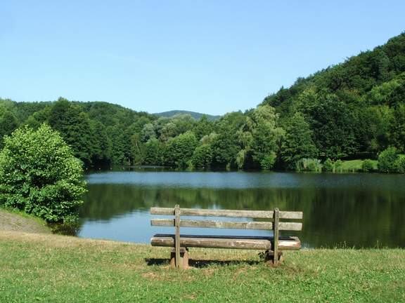 Ludwigswinkler DorfweiherGeballte Bademöglichkeiten gibt es in der Südwestecke des Pfälzerwaldes im Dreieck Schönau-Fischbach-Ludwigswinkel: Vor allem der Schöntalweiher und der Saarbacher Hammer (Mühlweiher) werden gerne besucht, aber auch der Sägmühlweiher in Ludwigswinkel (Bild) und der Königsweiher am Ortsrand von Schönau laden zum Baden ein. In dieser Gegend sind als Rundwanderungen zu empfehlen: Der Premiumweg Wasgau-Seen-Tour, die Sieben-Burgen-Tour, eine Tour zum Maimont, eine grenzüberschreitende Seen-Tour im Maimontland, eine Eyberg-Wanderung und eine Wanderung zum Waldhaus Hohe List. Für den kleinen Gehhunger bieten sich Spaziergänge im Naturschutzgebiet Rösselsweiher-Rohrweiher, im Naturschutzgebiet Pfälzerwoog oder zu den Burgenüberresten auf dem Lindelskopf an. Und wer auch diese Mühen scheut, wird am Barfusspfad in Ludwigswinkel Gefallen finden.