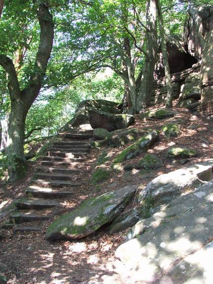 ein wildes Gewirr aus Felstrümmern, in denen einige Treppen für den Abstieg