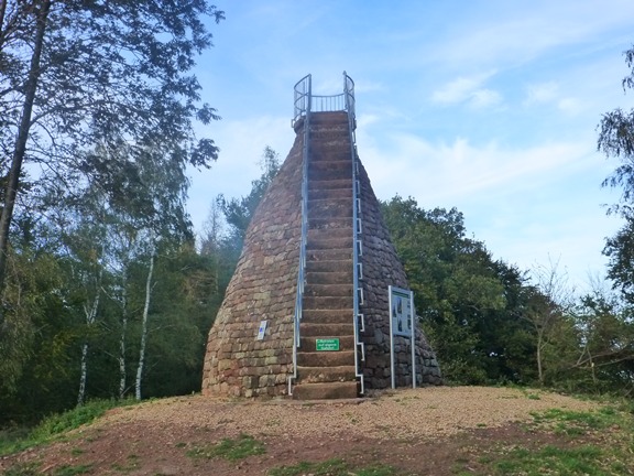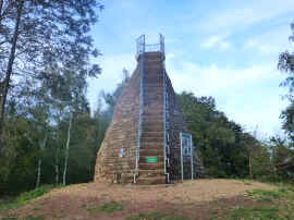 dem Turm informiert eine Tafel über eine erst 2014 gemachte Entdeckung: Auf dem schmalen Bergrücken des Hohenberges befand sich vor