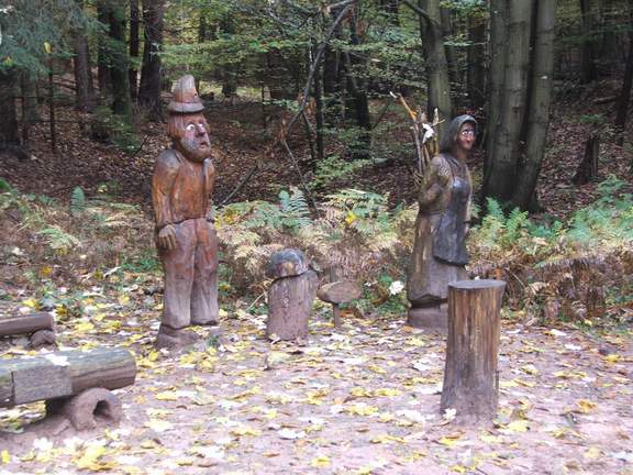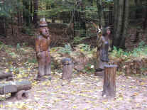 Weg an vielen Waldgeister-Skulpturen vorbei führt.