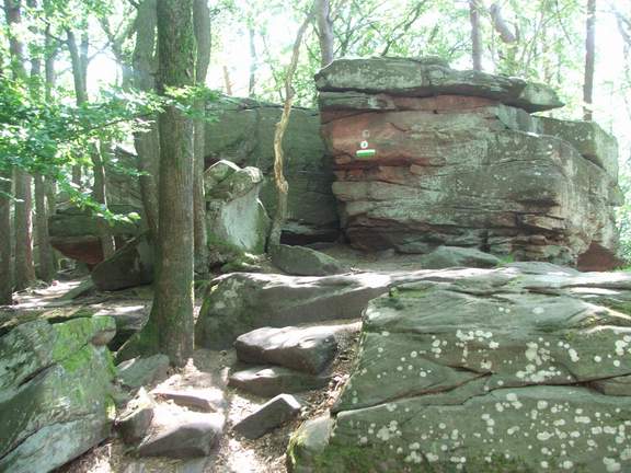 Hüttenhohl finden wir den Beginn eines Pfades hinauf zum Felsenmeer [Weiß-Grüner