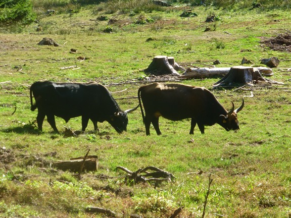 Ur-Rinder mit ihren weitgeschwungenen Hörnern sofort zu erblicken ist