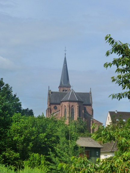 Gemeinde, die von einer wuchtigen Kirche überragt wird. Wir gehen nicht bis