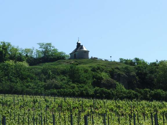 Dieser von einer Kapelle gekrönte, aus den Weinbergen herausragende Hügel