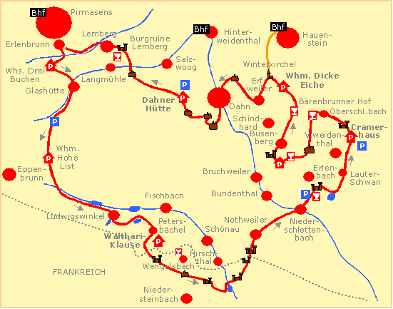 Pirmasens-Erlenbrunn (5 Tage) oder Hauenstein (4 Tage)