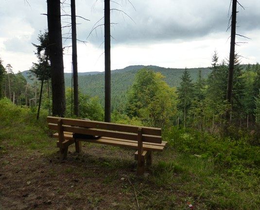 Wald für Fernblick; zahlreiche Wildschweinspuren zeigen, dass man hier doch nicht