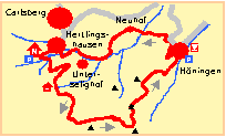 Hertlingshausen (260 m) oder Höningen (280 m)